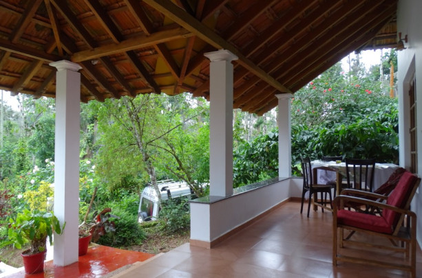 The location is superb. In the middle of a coffee plantation, surrounded by huge trees and greenery all over. The portico is a nice place to sit and get the view of the estate.