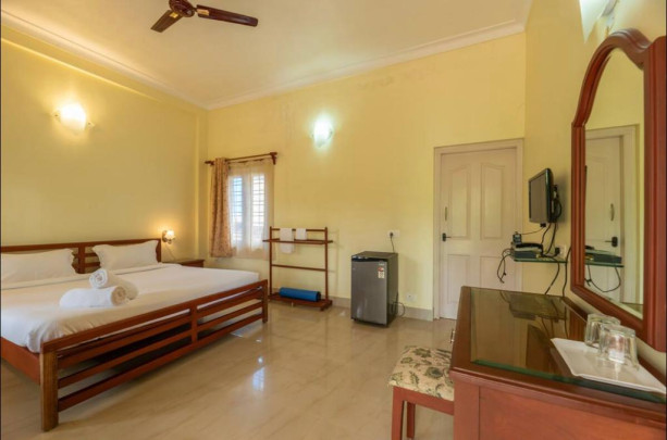 TGO is an exclusive retreat situated deep inside coffee and spice plantation and offers well-kept rooms, spotless baths, king sized beds, a TV and fridge in every room, delicious home cooked food by the resident chef and warm hospitality. All rooms have AC.